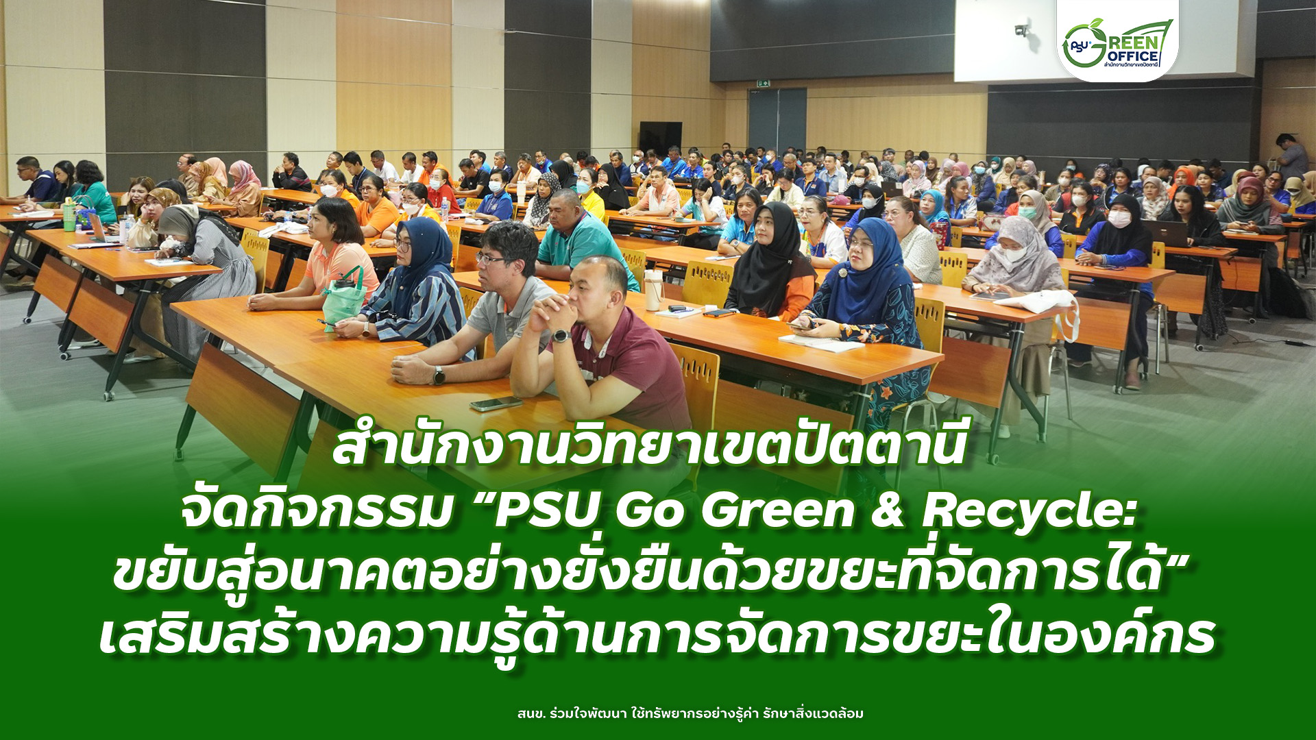 สำนักงานวิทยาเขตปัตตานี จัดกิจกรรม “PSU Go Green & Recycle: ขยับสู่อนาคตอย่างยั่งยืนด้วยขยะที่จัดการได้” เสริมสร้างความรู้ด้านการจัดการขยะในองค์กร